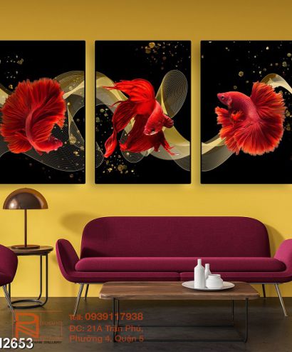 BỘ 3 TRANH CÁ CHÉP ĐỎ UỐN LƯỢN