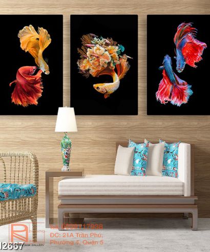 BỘ 3 TRANH CÁ CHÉP NGŨ SẮC