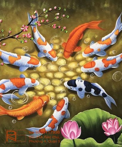 Tranh sơn dầu 9 con cá chép khắc với những người thuộc hành Thổ, bao gồm người sinh tuổi Thìn, Tuất và tuổi Mùi. Còn lại, các tuổi thuộc hành Thủy, hành Mộc, hành Kim và hành Hỏa là những người nên lựa chọn loại tranh này để treo trong nhà.