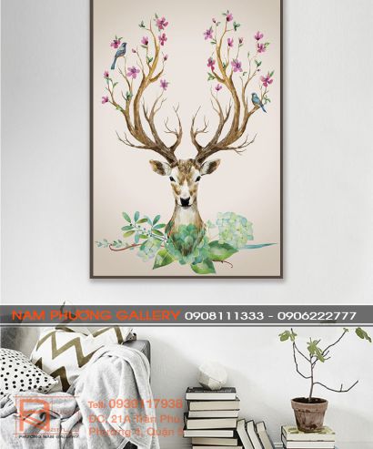 Đa số những chú nai xuất hiện trong cảnh sắc thiên nhiên nên nhiều người nghĩ rằng khi treo tranh thêu cảnh Nai hươu thì không có tác dụng phong thuỷ và chỉ có ý nghĩa trang trí thuần tuý. Tuy nhiên cũng có nhiều điều thú vị về loài Nai và tác dụng phong thuỷ rất tốt của tranh Hươu Nai mà nhiều người chưa biết đến. Như chúng ta đã biết Hươu hay Nai người ta thường gọi chung là Hươu Nai (cùng một họ) là những loài động vật có vú nhai lại thuộc họ Hươu nai gồm nhiều loại như: hươu, nai, hoẵng, mang, mển, tuần lộc… Con đực sở hữu một bộ sừng tuyệt đẹp, sừng của chúng mọc và rụng theo từng năm (trừ loài hươu nước, tuần lộc cái không có sừng). Hàng năm, vào cuối mùa hạ, sừng hươu nai rụng đi, mùa xuân năm sau mọc lại sừng mới. Sừng mới mọc rất mềm, mặt ngoài phủ đầy lông, sờ vào êm như nhung nên gọi là nhung hươu nai, là dược liệu quý rất bổ và quý giá chỉ đứng sau nhân sâm. Môi trường sống thích hợp của chúng là đồng cỏ, trảng cỏ, rừng thưa có nhiều cây, cỏ non… Ban ngày nai thường tìm nơi yên tĩnh, kín đáo an toàn để ngủ, nghỉ… ban đêm tìm kiếm thức ăn cùng những hoạt động khác. Dưới ánh trăng huyền ảo, mọi thứ như lung linh hơn và đẹp hơn, cảnh sắc mùa thu cùng gia đình nai bên suối uống trăng đùa giỡn tạo cho ta cảm giác ấm áp của gia đình hạnh phúc yên bình. Người ta cũng thường treo tranh Phong cảnh Gia đình nai để cầu mong gia đình sung túc sum vầy yên ấm hạnh phúc. Cùng với thân hình thon gọn, không quá to lớn cũng không nhỏ bé, bốn chân thon và dài cân đối, trên thân điểm những đốm lông nhỏ rất đẹp, chúng còn có cặp sừng dài, trông vô cùng đáng yêu.