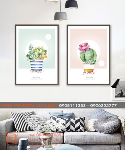 Tranh canvas bộ 2 chậu hoa xương rồng