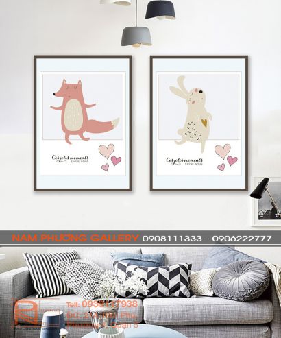Tranh canvas bộ 2 thỏ và cáo