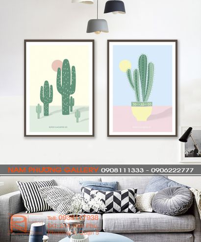 Tranh canvas bộ 2 xương rồng