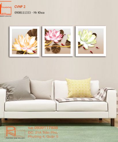 Tranh canvas bộ 3 hoa sen