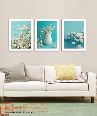 Tranh canvas bộ 3 hoa trắng