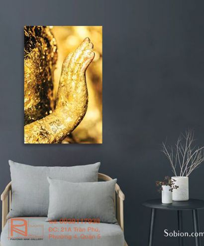 Tranh treo tường chủ đề: ĐỨC PHẬT ------------------ Người ta nói “Ngắm nhìn một vị Phật thì công đức sánh ngang với việc cúng dường 10.000 vị tăng trong một buổi sáng.” Với mỗi Phật tử, việc có trong nhà một bức tranh về Phật là điều thật thiêng liêng. Ngoài để thờ lễ, tưởng nhớ thì tranh về Phật còn được dùng để trang trí cho không gian nhà cửa thêm phần nhã nhặn, tinh tế, bình yên, ấm áp. Tranh Phật cần được treo một cách cẩn thận ở những nơi trang trọng như phòng khách, phòng thờ và tránh treo tại phòng ngủ hay những nơi riêng tư khác. Treo tranh Phật trong nhà trước hết là lời giới thiệu bản thân là một người hướng Phật. Sau là thể hiện mong ước được Ngài che chở, bảo vệ cho bản thân và người thân. Bức tranh Phật treo trong nhà sẽ đem lại bình an, sức khỏe đến cho gia đình. Trong cuộc sống, sẽ có những khi chúng ta phải đối mặt với những khó khăn, mệt mỏi, bức bối.... việc thường xuyên ngắm nhìn hình ảnh Đức Phật từ bi sẽ giúp tâm can ta yên ổn, tính cách nhu hòa nền nã, hướng thiện hơn. Một bức tranh Phật vì thế còn có tác dụng nhắc nhở con người sống đạo đức, từ bi hỉ xả, vì mọi người...